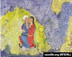 “Лайли ва Мажнун” 1999 йил. Қоғоз, сувбўëқ. Рассом шарқ миниатюрасидан таъсирланиб, бир неча туркум суратлар яратди. Бу асар ана шу туркум суратлардан бири. Суратнинг фони абру баҳор технологиясида яратилган.