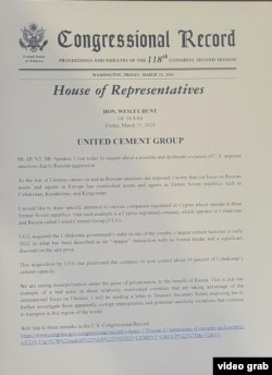 "2022 йил бошида Кипрда рўйхатдан ўтган, аммо Ўзбекистон ва Россияда фаолият юритувчи UCG Ўзбекистон ҳукуматининг мамлакатдаги энг йирик цемент заводларидан биридаги улушини "шаффоф" деб номланган битим асосида сотиб олди. Аммо бу "шаффоф" битимнинг расмий тендерсиз ва сезиларли чегирма билан амалга оширилгани айниқса шубҳали. Бунинг натижасида UCG компанияси Ўзбекистондаги цемент ишлаб чиқариш қувватларининг қарийб 50 фоизини назорат пакетига эга бўлди. Биз хусусийлаштириш ниқоби остида Россия фойдасига монополлашув гувоҳи бўлмоқдамиз,"деган америкалик конгрессмен.